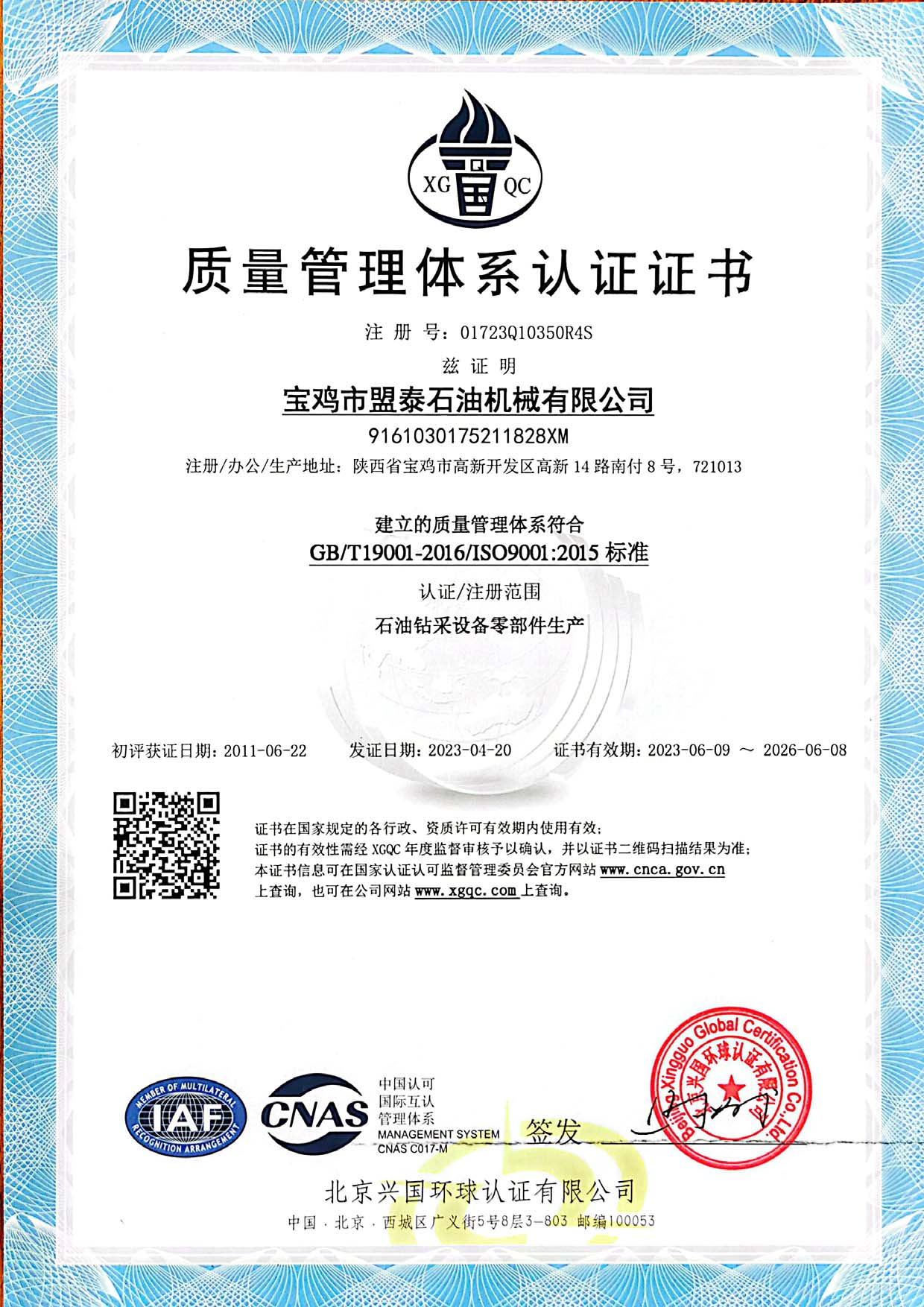 質(zhì)量管理體系認(rèn)證證書(shū)