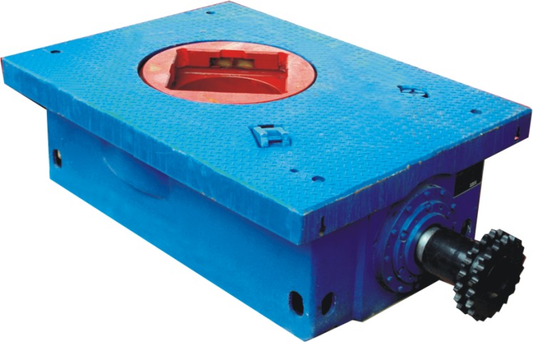 轉(zhuǎn)盤是在進(jìn)行鉆井作業(yè)時(shí),通過(guò)一對(duì)錐齒輪副實(shí)現(xiàn)減速,使轉(zhuǎn)臺(tái)獲得一定范圍內(nèi)的轉(zhuǎn)速和扭矩輸出,驅(qū)動(dòng)鉆具進(jìn)行工作,并在起下鉆和下套管時(shí),懸掛管柱的設(shè)備